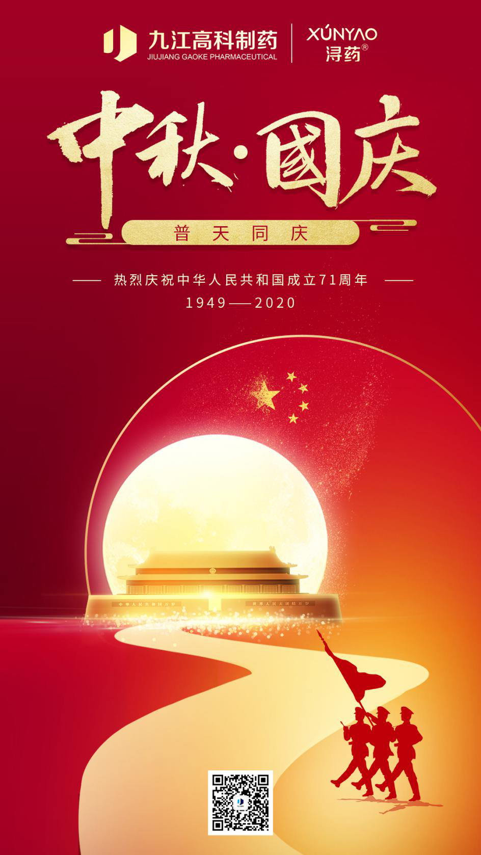 欢度国庆,喜迎中秋| 国泰民安,阖家团圆发表时间:2020-10-14 20:52 山河辽阔,人间烟火。五千年岁月长河,已是过往,九百六十万平方公里,皆是希望。2020年10月1日,中秋遇见国庆,国泰民安和阖家团圆,国与家撞了个满怀。一杯敬明月,一杯敬我们! 《囍庆》 双杯斟满桂花酒,两节同庆颂神州。 四海升平铺锦绣,九州辉煌耀金秋。 政通人和惠风畅,国泰民安俊贤稠。 炎黄子孙兴伟业,华夏龙族展宏猷。 随着当前新冠肺炎疫情防控形势稳定向好,外出旅游出行的人员也增多,希望大家健康安全出游,九江高科制药温馨提示您: 二、预约前往。请提前了解旅游目的地疫情防控政策,按要求做好相关准备。提前通过网络实名预约旅游景区门票,避免盲目前往旅游景区,未预约请不要前往旅游。 三、理性消费。理性消费,按需取餐文明就餐,拒食野味,落实“光盘行动”,杜绝舌尖上的浪费。 四、健康扫码。提前准备好“健康码”、身份证等有效证件,全程正确佩戴口罩,主动配合实名登记、体温测量和防疫健康码核验。 五、保持间隔。不扎堆、不聚集、不拥挤。 六、做好防护。请随身携带口罩、手消毒剂等必要物品,保持良好的卫生习惯。旅途中出现发热、干咳、乏力等症状应及时到就近的医疗机构就诊。 七、文明出行。养成健康习惯,遵守礼仪规范。理性对待疫情防控期间的防控组织方式和应急处置。请主动配合指挥,维护正常秩序。